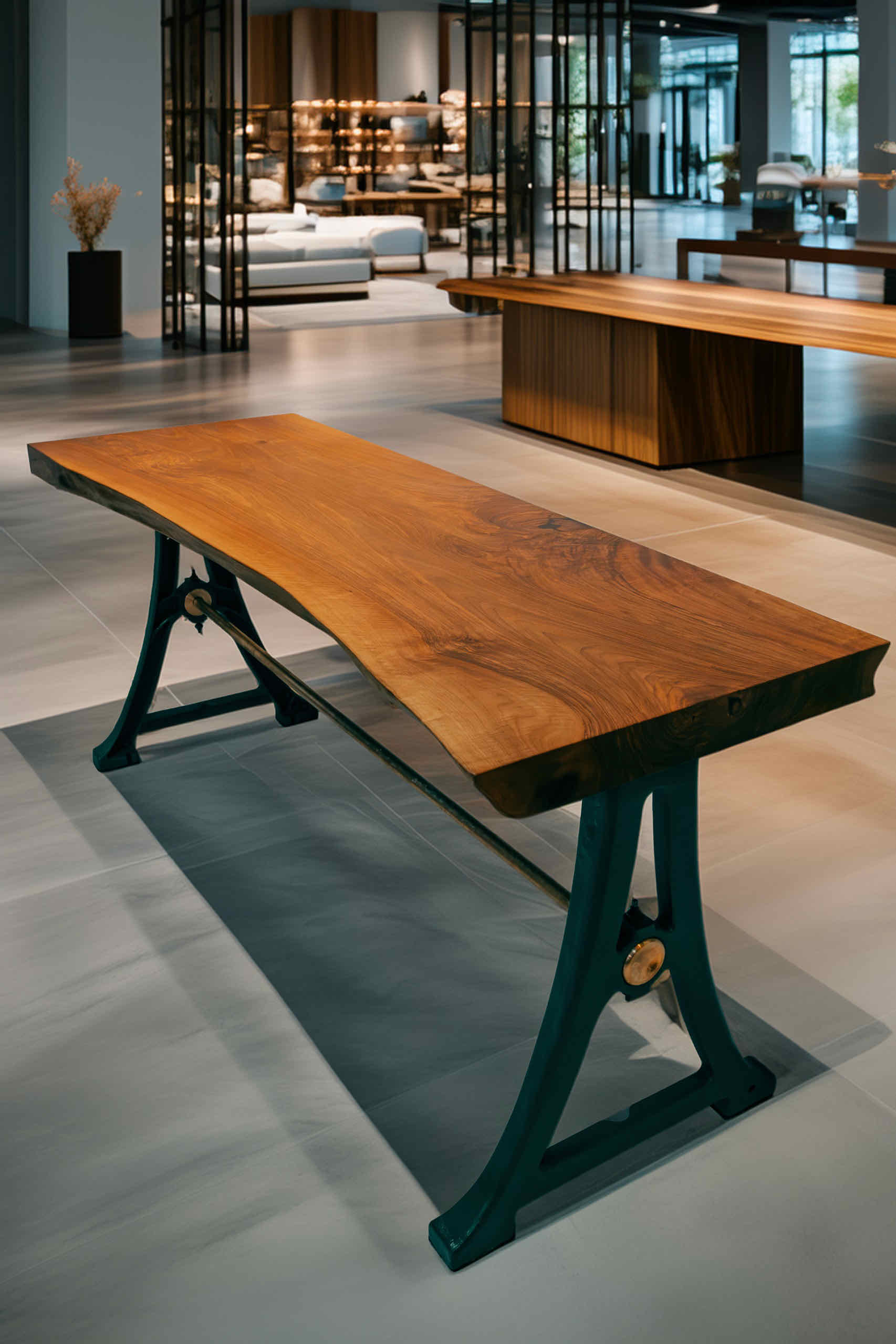 Piesa de mobilier unica, realizata dintr-o singura scandura de nuc masiv vechi de peste 100 de ani, cu grosimea impresionanta de 8 cm si lungimea de 220 cm. Lemnul pastreaza textura naturala si caldura sa autentica, oferind un aspect spectaculos si atemporal.
